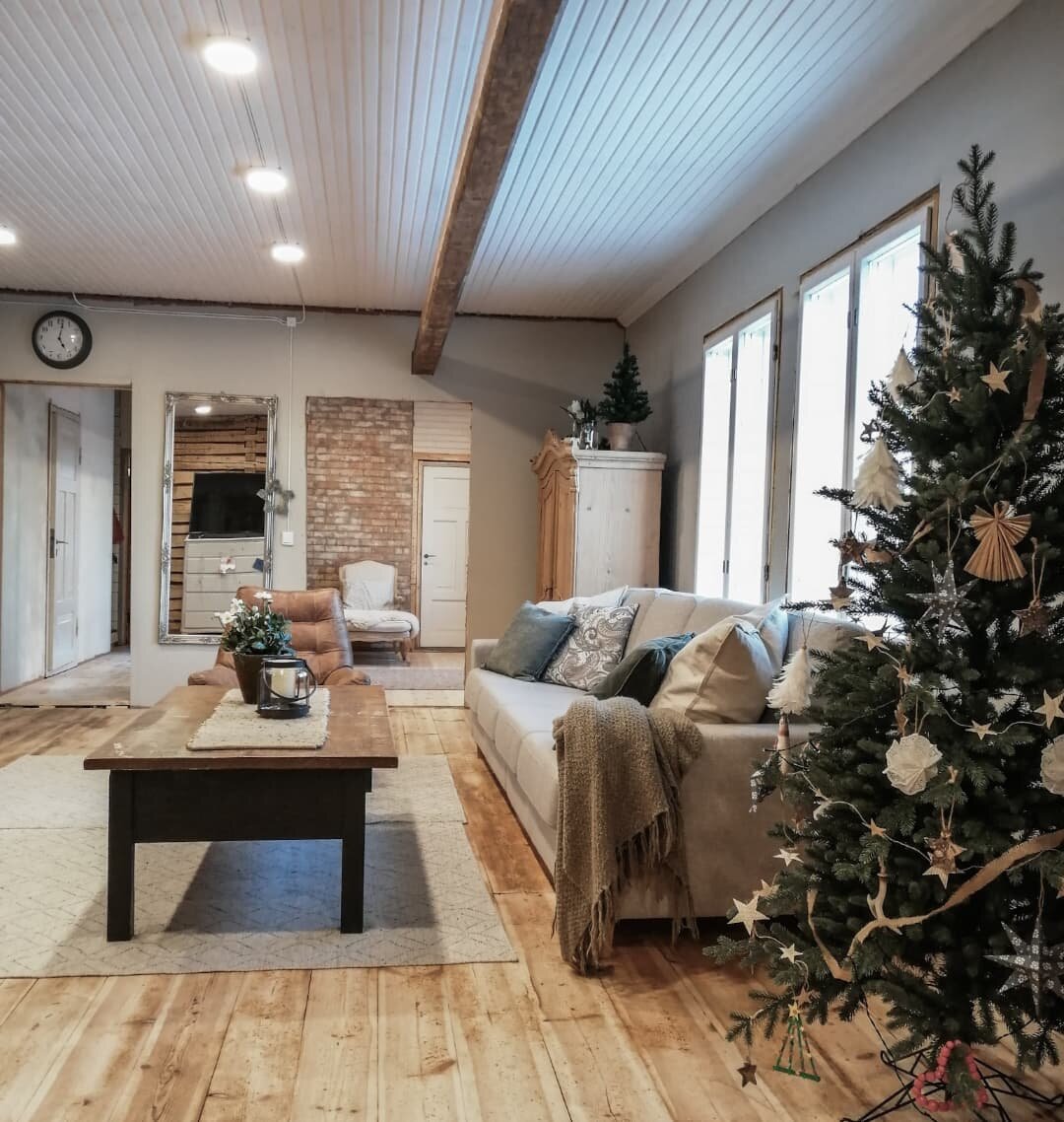 Далеко-далеко на севере, в Финляндии, в регионе Похьянмаа есть удивительный дом - в этом году ему исполняется ровно 100 лет, и живет в нем любящая семья с детьми и щенком ньюфаундленда. Несмотря на солидный возраст, дом выглядит просто потрясающе. Но, конечно, это не получилось само собой - его хозяева вложили огромное количество труда, сил и любви, чтобы он стал таким, какой есть. И это чувствуется даже через фотографии. В своей юности дом выглядел совсем иначе, да и время его не пощадило - многочисленные поколения живших в нем людей перестраивали и перекраивали его на свой лад. Поэтому своим новым жильцам дом преподнес немало сюрпризов - как приятных, так и не очень. Стиль и цветовое решение интерьера явно диктовал сам дом. По крайней мере, несмотря на современные покрытия, хозяева сохранили и мощные потолочные балки, и деревянный пол со стенами, и белую отделку потолка. Обратите внимание на то, как бережно вписаны необходимые технические элементы - практически незаметно, так, чтобы