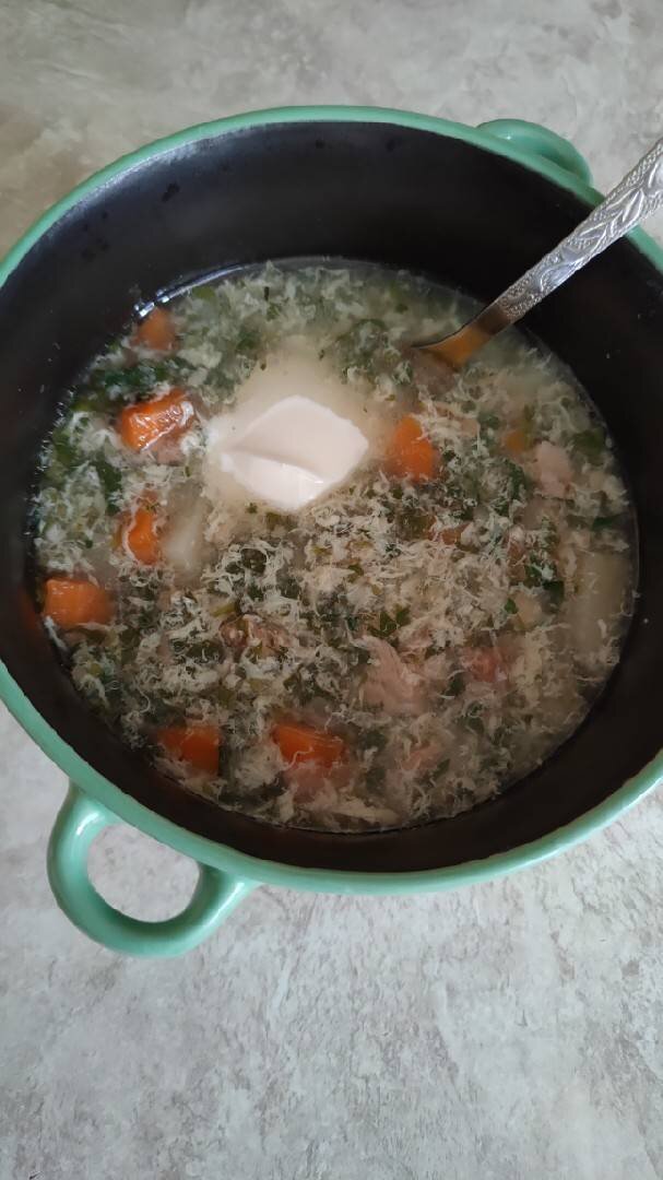 Добавить яйцо в суп интенсивно помешивая. Довести до кипения, а затем выключить плиту и дать настояться мин 15-20.