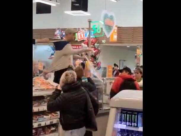 Жителя Твери доставили в отделение УМВД по Тверской области после того, как он устроил дебош в гипермаркете «Глобус», пишет АиФ. Ролик с его участием опубликован в группе «Осторожно, Тверь!» в социальной сети «ВКонтакте». По словам очевидцев, мужчина забрался на кассу самообслуживания №56 и стал кричать, что людей «обманывают», а также о русофобии. К месту случившегося прибежали охранники, одному из которых удалось зацепиться за кофту хулигана и снять его. По факту случившегося проводится проверка.