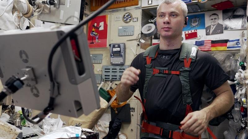 При занятиях на беговой дорожке космонавты надевают специальную жилетку. Фото: vk.com/denis_mks Занятия спортом на тренажёрах являются неотъемлемой частью пребывания в космосе. Об этом на своей странице в социальной сети «ВКонтакте» заявил петербургский космонавт Денис Матвеев. — Ежедневно мы уделяем по два часа для занятия спортом на тренажёрах (и да, даже в выходные). Исключения составляют дни, когда мы выходим в открытый космос, т. к. работы сопряжены с сильными физическими нагрузками, — отметил Матвеев. Он также пояснил, что физические нагрузки необходимы, поскольку в космосе отсутствие земного притяжения медленно уменьшает мышечную массу тела. При занятиях на беговой дорожке космонавты надевают специальную жилетку, которая через ленты притягивается к полотну, иначе ноги просто бы болтались в воздухе. Напомним, на днях Денис Матвеев уже во второй раз за месяц вышел в открытый космос.