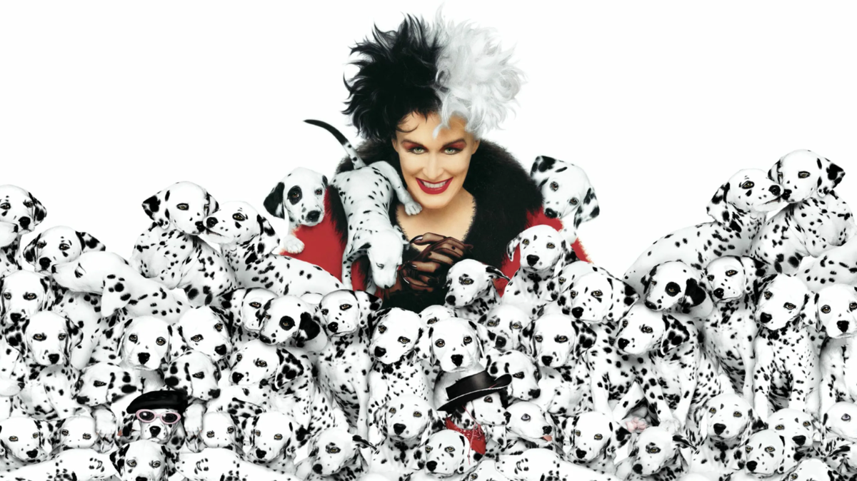 1) 101 далматинец. 1996 г. Эксцентричная злодейка Круэлла Де Виль решает украсть ровно 101 далматинца, чтобы пополнить коллекцию своих меховых изделий. Однако она еще не представляет, что ее ждет, ведь хозяева и родители маленьких пятнистых щенков не будут сидеть сложа руки...Киноремейк на мультфильм получился на редкость удачным, живым и весёлым, а за роль Стервеллы ( Круэллы) Де Виль Гленн Клоуз получила Золотой глобус за "Лучшую женскую роль (комедия или мюзикл)". А позже вообще разогнались , сняв еще и ленту " 102 далматинца"