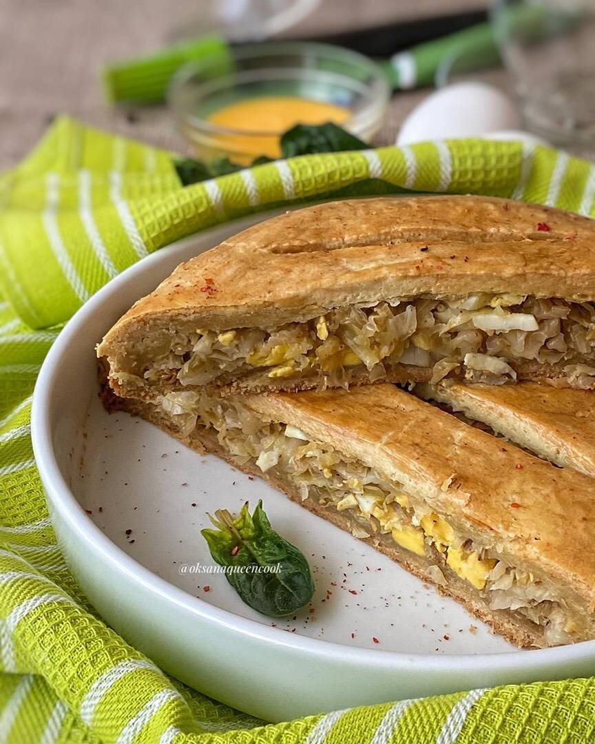 #академия #готовимдома #домашняяеда #едаялюблютебя #пироги #выпечка Ингредиенты: — Мука пшеничная, — Масло сливочное, — Сметана, — Сода, д.л. — Сахар, — Соль, Начинка:, часть — Капуста, — Лук, — Яйца, по вкусу Соль, по вкусу Перец чёрный молотый, Паприка молотая, Раст.масло Способ приготовления: Сметану смешать с солью, содой и сахаром. К просеянной муке добавить охлаждённое сливочное масло. Удобно натереть на терке, периодически присыпая мукой. Размять руками до образования крошки. Соединить со сметаной, собрать в шар, накрыть пленкой и поставить в холодильник на 20-30 мин. Сварить яйца вкрутую. В небольшом количестве масла обжарить мелко нарезанный лук до легкого золотистого цвета, добавить нашинкованную капусту, заправить солью, перцем и паприкой. Тушить несколько минут. После остывания добавить сваренные, нарезанные кубиками яйца. Перемешать. Тесто разделить на две части, при этом одна часть должна быть больше другой. Большую часть раскатать в пласт по размеру формы, учитывая борти