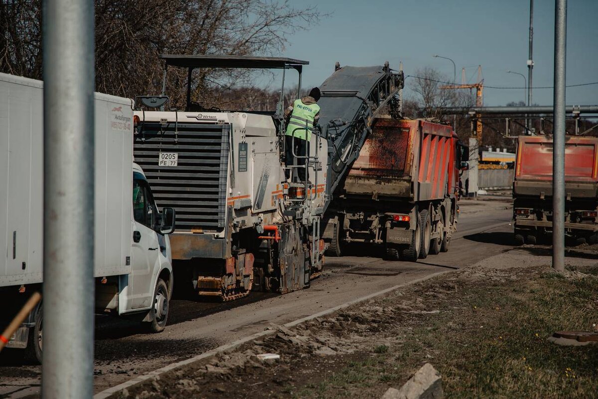 По его словам, сейчас на площадке трудятся более 30 рабочих. Задействовали 13 грузовиков и две фрезеровочные машины.