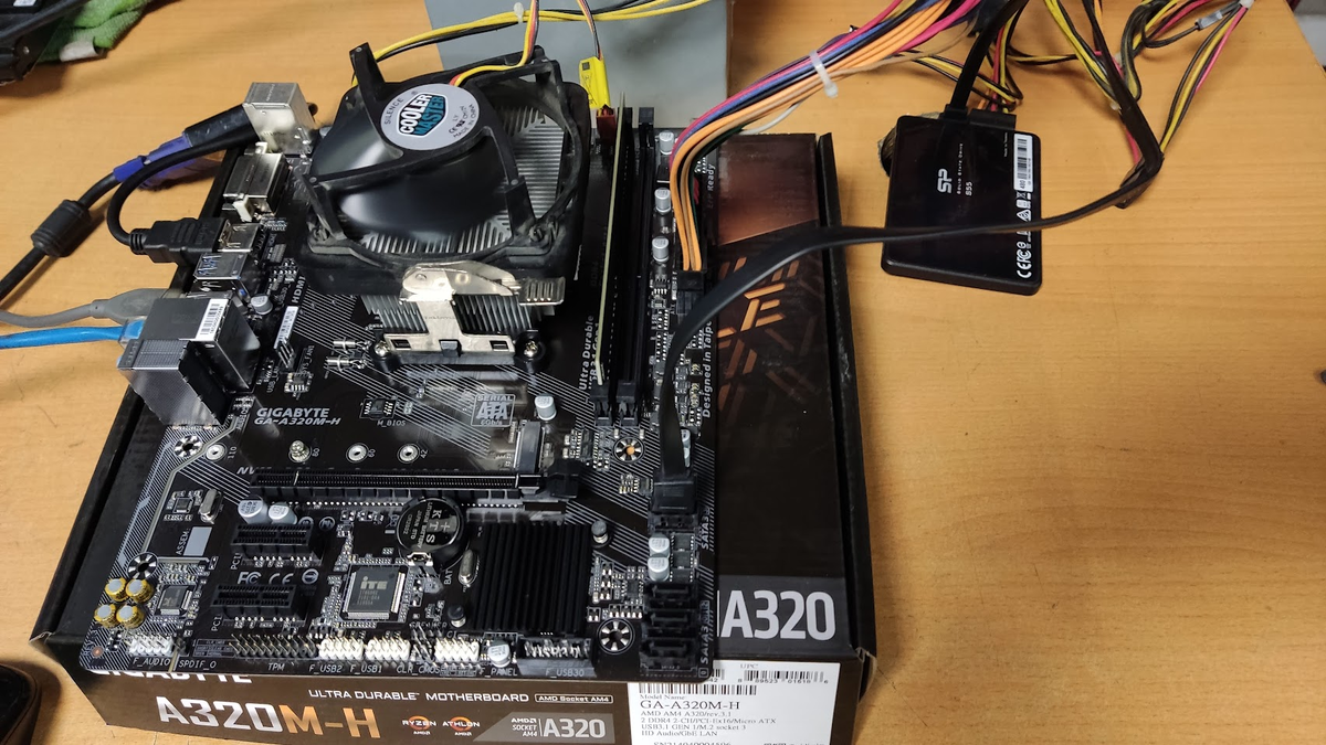 1. Лошадка первая, молодая AM4. Плата Gigabyte A320M-H + процессор AMD A6-9500E+ 4Гб DDR4 = 8000 р.