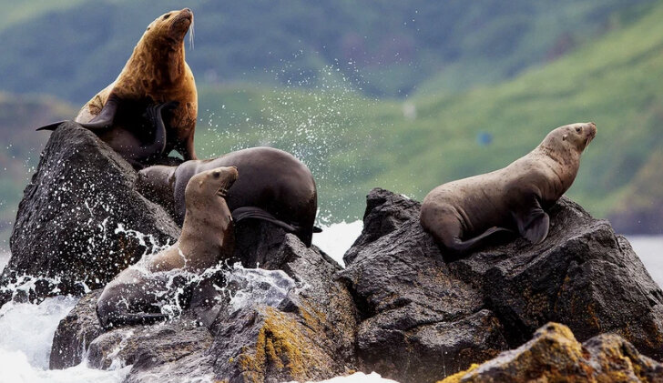 Сивуч или северный морской лев – самый крупный вид в семействе ушастых тюленей. Относится ко второй категории животных, то есть к тем, численность которых сокращается. В России сивучи начали заметно исчезать в 1890-1990 годах – со 115 000 до 15 000 особей. Согласно последним данным, их популяция в водах РФ составляет около 20 000. Животные встречаются в водах Охотского, Берингова, Японского морей, а также вдоль Курильских островов и Восточной Камчатки. Сивучи предпочитают прибрежные зоны, острова. Их жизненный цикл состоит из миграций и периодов лежбищ. Точная причина снижения численности северных морских львов не установлена. Основные факторы: промысел, загрязнение вод, потепление, вылов рыбы, которая составляет основу рациона морских львов. Также у сивучей есть естественные враги – косатки и бурые медведи.