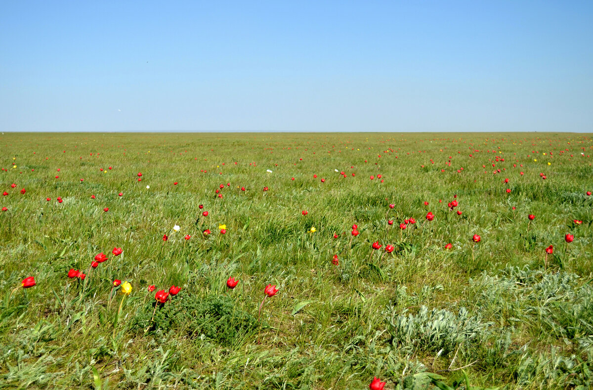 Суббота. Фестиваль тюльпанов В апреле в степях Калмыкии зацветают тюльпаны. Фотосессия с тюльпанами – главное развлечение в эти дни. Наиболее распространены красные и желтые тюльпаны (тюльпаны Шренка и Биберштейна). Встречаются также розовые, белые и оранжевые цветы. Но степь цветет не вся, а небольшими лужайками. Если простого любования цветами недостаточно, то можно отправиться на «Фестиваль тюльпанов», который каждый год организуют в Калмыкии местах цветения тюльпанов. Организацией фестиваля занимается Министерство культуры и туризма Республики Калмыкия. Согласно заявленной программе – это зрелищное мероприятие, позволяющее гостям познакомиться с традиционной калмыцкой культурой. На деле фестиваль организован очень слабо: несколько юрт, выступление местного хора и танцевального ансамбля, несколько сувенирных прилавков, из национальной кухни только калмыцкий чай. Самыми колоритными развлечениями, пожалуй, можно назвать мастер класс по лепке традиционных калмыцких борцоков и танцующи