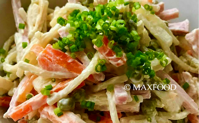 Для начала - дорогие мои, готовит все эти вкусняшеньки мой муж, он бывший профессиональный повар, я только записываю и выкладываю :) Этот салат финны готовят или покупают в магазине к Первомаю, который здесь называется Vappu и отмечается огромными воздушными шариками, гимназистскими фуражками, пикниками, встречами с друзьями и неуемными возлияниями, в особенности медовухи. «Итальянский салат» — это очень любимое финнами блюдо, настоящая классика местной кухни. В таком виде итальянский салат есть только в Финляндии. Наиближайший родственник его — оливье, который делал при Российском царском дворе итальянец Люсьен Оливье. Особенностью этого блюда являются макароны и ветчина. В Финляндии это достаточно известное блюдо и его можно встретить в любых супермаркетах, однако далеко не все догадываются, что это за салат и почему так называется. Из продуктов понадобятся: Приступаем к готовке. Подавать лучше всего, посыпав зеленью на ваш вкус. Блюдо готово! Отличное праздничное блюдо. Замечательно