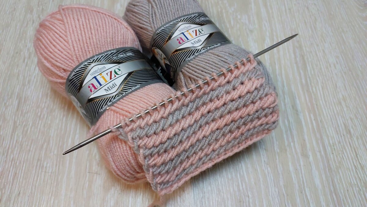 Очень интересный узор я хочу сегодня предложить Вашему вниманию. Он может быть связан из пряжи разного цвета, что особенно актуально тогда, когда скапливаются остатки пряжи от других проектов. Для вязания этих образцов была взята пряжа фирмы Ализе СуперЛана Миди, спицы №4. Рапорт рисунка - 2 ряда. Набираю четное количество петель ( 20 петель) и провязываю установочный ряд темной пряжей, всего в рисунке будет три вида цвета - изнаночными петлями. 1 ряд: нить второго цвета - бирюзового 1 кромочную снять * между первой и второй лицевой петлей вожу правую спицу и вытягиваю рабочую нить, затем снимаю лицевую петлю темного синего цвета на спицу не провязывая и так до конца ряда* 1 кромочная изнаночной 2 ряд: нить второго цвета - бирюзового 1 кромочную снять* первую темную петлю после кромочной провязать изнаночной, затем светлую петлю (бирюзовую) и темную петлю провязать вместе изнаночной и так до конца ряда, последнюю петлю и кромочную петлю провязать вместе изнаночной петлей* Раппорт за