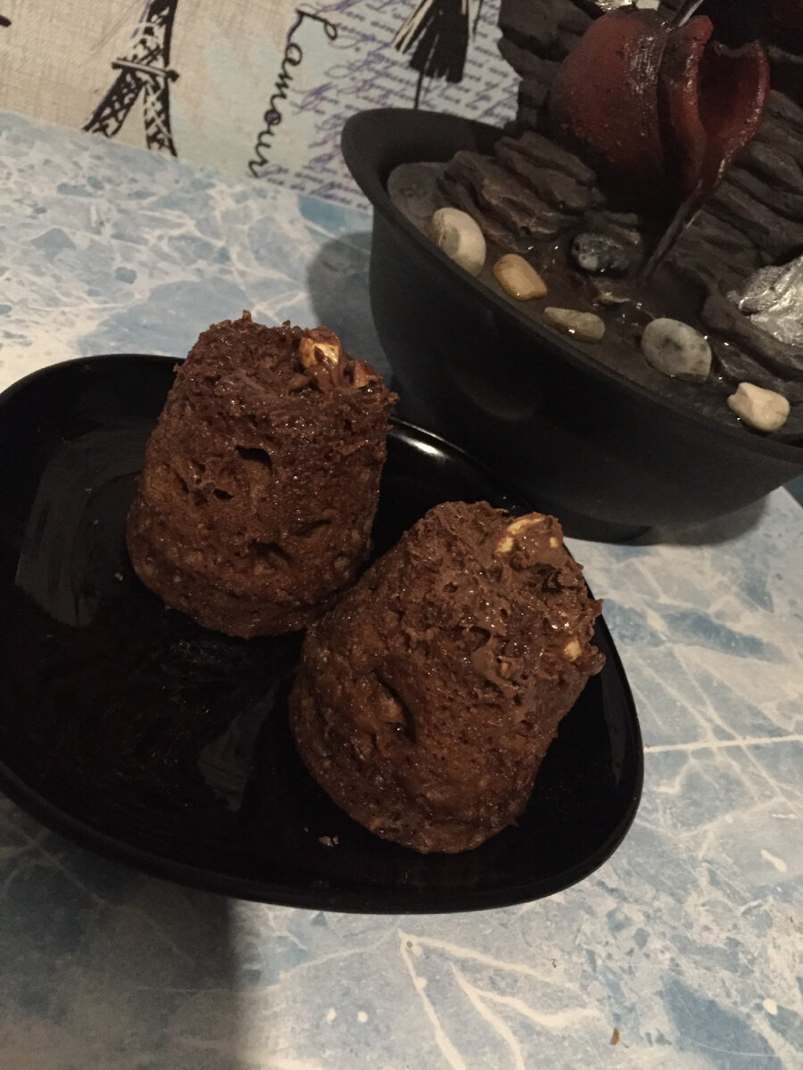 Захотела сладеньким удивить любимых. Мне понадобилось на два кекса 1)яйцо - 1 шт 2) масло растительное - 1 ст.л. 3) мука пшеничная - 2 ст.л 4) молоко - 2 ст.л. 5) сахар - 2 ст.л. 6) какао русский - 1 ст.л 7) какао несущие - 1 ч.л 8) разрыхлитель - 1 ч.л. 9) ванилин - 1 ч.л 10) шоколадка ( я взяла милка с орехами) 4 кусочка 11) 2 кружки ) Берем глубокую тарелку. И всё добавляем. потом шоколадку трём на терке мелкой. И всё мешаем силиконовой ложкой ( с неё легче всё отходит) Потом смазываем маслом растительным кружки ( чтоб кекс легко отошёл от кружки) Переливаю в два стакана 1/4 теста. Тесто на всю кружку не поднимется, но в два раза поднимется точно. Ставим в микроволновку на полную мощь на 3 мин. После переворачиваем кружку, стучим по дну и кекс сам как куличик появляемся на блюдце) я ещё 2 кусочка шоколадки растопила и добавила сверху ) Получилось очень вкусно. очень легко. Пробуйте) #кекс #рецепт #быстро и вкусно #легко и просто