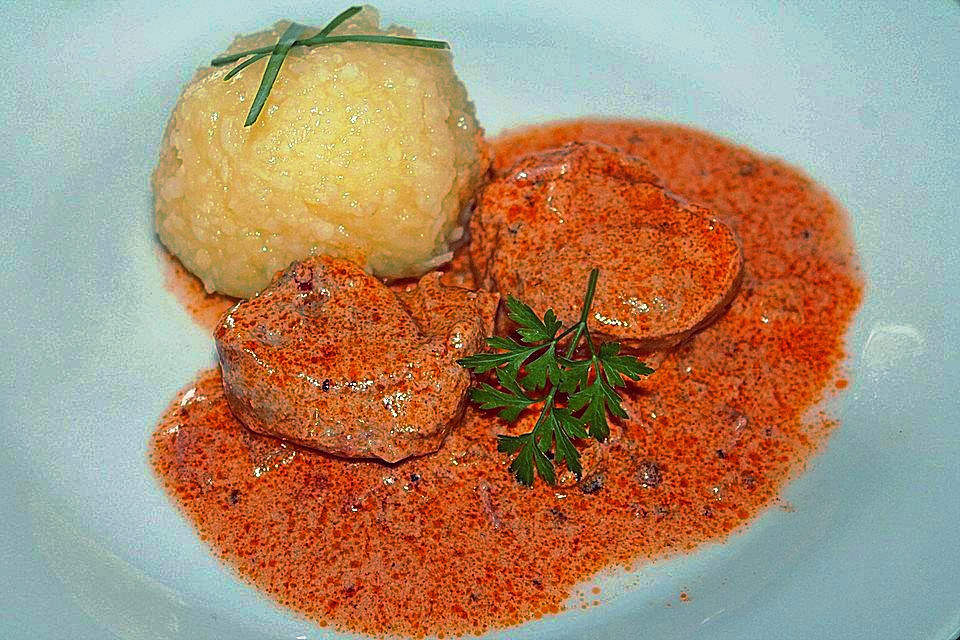 Ну да, блюдо плотное (на первый взгляд) и потому не очень весеннее, однако и весной без мяса - никак. Есть, наверное, счастливые люди, которые сыты пойманным огурцом, но вот оглядываюсь по сторонам и понимаю - большинство, все-таки, хищники. Поэтому сегодня - свинина. Берем: Как готовим: Вырезку нарезаем на куски-медальоны, обжариваем до румяной корочки на небольшом количестве масла. Снимаем со сковороды, и, в остатки жира отправляем нарезанную кубиками ветчину. Когда она чуть подрумянится, добавляем нарезанный кубиками лук, жарим до полупрозрачности. Когда это состояние лука будет достигнуто - отправляем в сковородку томатную пасту и горчицу, а, через пару минут - деглазируем все это подогретыми сливками. Разогретыми - потому что так меньше шансов, что они свернутся. Дальше действуем очень осторожно. Уменьшаем нагрев, чтобы никакого бурного кипения не было. Выкладываем в получившийся соус мясо, и тушим минут 20-25, не накрывая крышкой. Сорус должен выкипать постеп