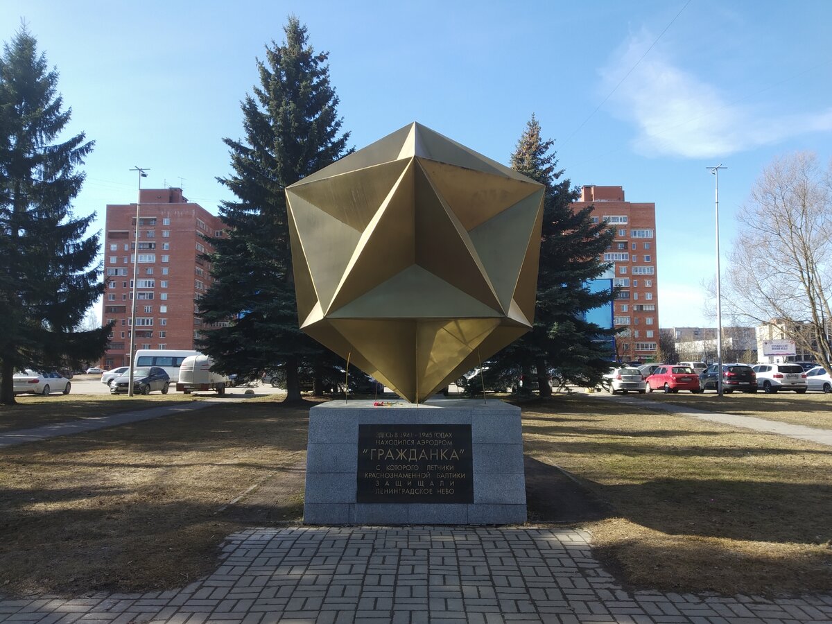 Продолжаю рассказывать про памятники Санкт-Петербурга, которые мало кому известны. Продолжу освещать памятники севера города. Расскажу про памятник, который находится недалеко от станции метро Академическая. Знак находится на месте военного аэродрома Гражданка, расскажу немного про него, а потом и про сам памятник. Аэродром Гражданка был построен осенью 1941 года, во время Великой Отечественной войны. Находился он около деревни Гражданка, которая тогда была в этих краях. До войны там жили в том числе и немецкие поселенцы, которых потом выгнали. После начала войны и подхода немцев к Ленинграду встала острая необходимость военного аэродрома на свободной территории, поэтому было решено построить его на краю города. Местом расположения выбрали территорию, которая принадлежала совхозу Ручьи. К новому аэродрому подвели специальную ветку железной дороги, которая обеспечивала поставки необходимого сразу на территорию. С самого открытия аэродром действовал во время блокады Ленинграда и применя