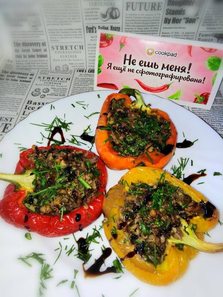 #академия #рецептдня #пост За идею и вдохновение благодарю автора нашего сайта @Stanislavna Станиславна. Ингредиенты: болгарского перца, тофа, луковица, чеснока, шампиньонов, грецких орехов, петрушки, соевого соуса, крахмала, постного майонеза, Соль и перец Способ приготовления: Подготовить продукты : овощи и зелень вымыть. Чеснок и лук очистить, мелко нарезать. Грибы промыть, измельчить. Лук и чеснок спассеровать, добавить грибы и на медленном огне потушить вместе несколько минут. Орехи замочить на 15 минут в тёплой воде, промыть, измельчить ножом. Добавить к грибам, перемешать и прогреть вместе пару минут. Петрушку измельчить, сыр натереть на крупной тёрке. Добавить в грибную смесь. Всыпать крахмал, добавить домашний постный майонез, соевый соус, соль и перец. Перемешать. Масса должна быть липкая, как фарш. Перцы разрезать пополам, очистить от семян и пробланшировать 5 - 7 минут в кипящей воде. Слить воду и нафаршировать перцы. Выложить в форму для запекания, влить по 2 столовых ложк