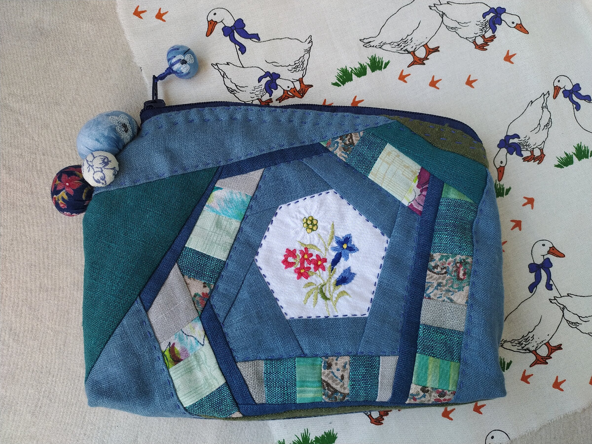 Косметичка набекрень и бусины пришиты сверху? Это кармашек счастья, а лоскутный водоворот вокруг букетика - волшебство!