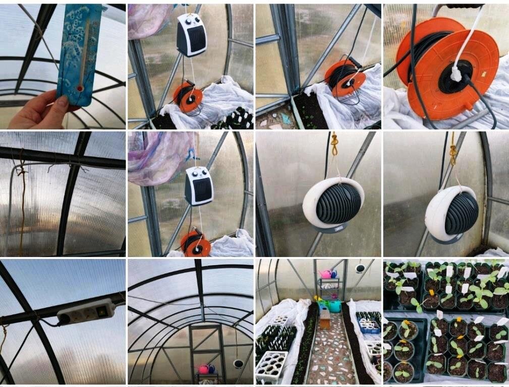 Расскажу как установить тепловой вентилятор, а вернее даже два: в двух торцах теплицы из поликарбоната. Такие маленькие обогреватели легко установить, подключить, и быстро убрать после начала теплой погоды. Установить тепловой вентилятор нужно на некоторое время, не нужно его держать в теплице постоянно круглый год. Однако, даже при таком временном отоплении, срок использования теплицы значительно увеличивается. Раньше я сильно завидовала промышленным теплицам, которые имеют отопление. Почему-то наивно считала, что если имеется в теплице отопление, то это значит оно постоянное, и всю зиму там что-то выращивают. Но однажды побывала в частном тепличном хозяйстве, где весной выращивают огромное количество рассады цветов и овощей на продажу. И спросила про отопление. В ответ неожиданно услышала: «А мы свои теплицы начинаем топить в феврале...». И я подумала: «Ну, в феврале-то мне, положим, теплицы не нужны. А вот в апреле было бы неплохо иметь теплую теплицу, чтобы не возиться с рассадой д