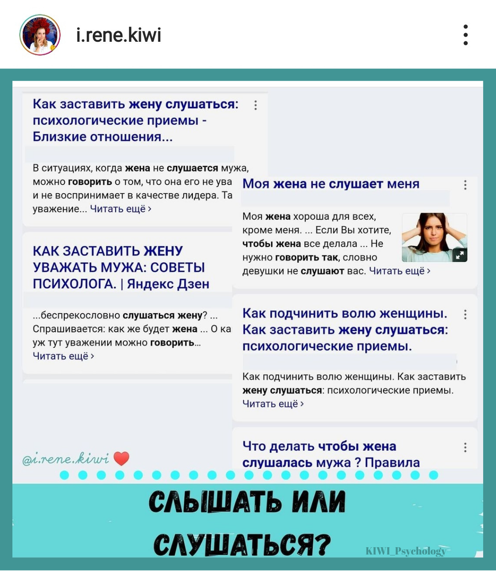 По статистике яндекса 36 запросов с этим вопросом в месяц задают пользователи. И я пошла читать советы от, прости Господи, психологов (кстати, некоторые статьи от женщин). Ловите ценные советы: ➡️Женщину необходимо воспитывать ПОСЛУШАНИЮ ➡️ Послушная женщина уважает своего супруга ➡️Жена должна слушаться мужа, и все мужья стремятся, чтобы так и было ➡️Независимо от того, что жена говорит, если у супруга есть уверенность в себе и в ценности своего мнения, ее неуважительное поведение рано или поздно все равно сойдет на нет, она станет следовать за ним, потому что она будет понимать, что не сможет мужчину запутать и сбить с намеченного пути. И даже если ее отношение не изменится, то муж, по крайней мере, будет в состоянии игнорировать ее и сохранять свой внутренний мир в спокойствии. Муж должен понять, что ему не нужно признание других людей, чтобы доказать свою самооценку, и только осознав это, он обретет такую уверенность в себе, которая покажет, что он - лидер. ➡️Если он будет п