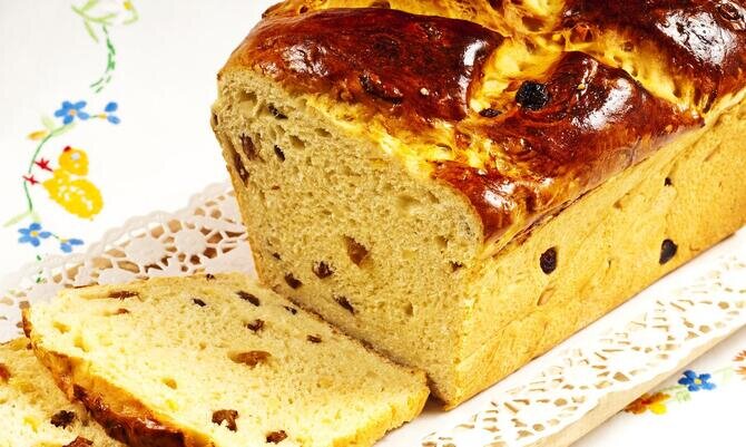 Рецепт главного пасхального угощения Татьяна Ивановна бережно переписывала из одной тетради в другую, пока кто-то не подарил ей специальную книгу. Здесь он обрёл своё постоянное место. Каждый год весной перед праздником она открывает записи, чтобы освежить их в памяти, хотя за многие годы приготовления практически наизусть помнит, чего и сколько надо положить. По этому рецепту она пекла паски для своих сыновей, а сегодня радует ещё и внуков. Для детей она всегда делала куличики в небольших банках из-под консервированной томатной пасты или горошка. А как-то оставила подходить тесто в хлебной форме. Получился настоящий пасхальный хлеб и по виду, и по сути. И так он пришёлся по душе родственникам, что теперь наряду с традиционными формочками, уже бумажными, печёт Татьяна Ивановна обязательно такую буханочку. Родные говорят, что у неё она получается особенно вкусная. Пасхальный хлеб 0,5 л молока, 5 яиц, 1 ст. сахара, 50 г сухих дрожжей, 3 ст. л. растительного масла без запаха, 200 г сливоч