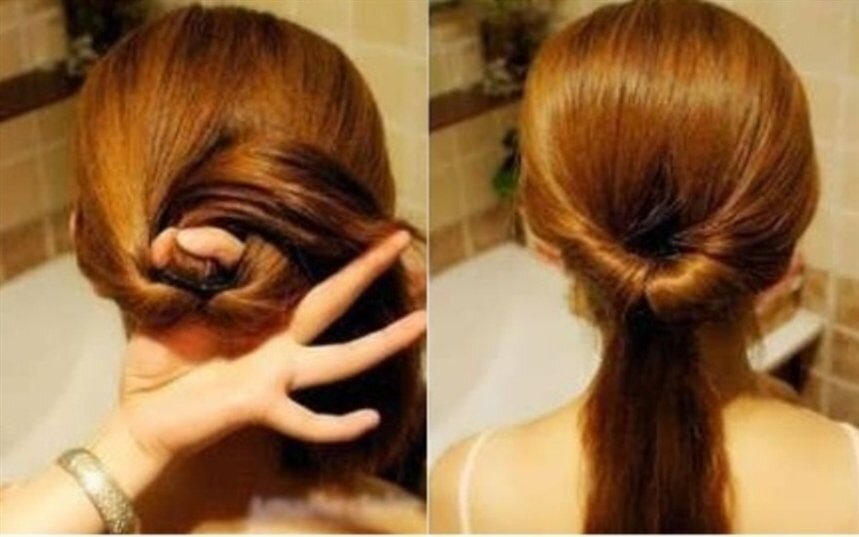 Чтобы создать более элегантный хвост, вам понадобится пенка для волос или воск. Сделайте ровный пробор (по центру или сбоку, как вам больше идет) и соберите волосы с одной стороны. Нанесите на них пенку и разделите на две равные пряди. А затем просто завяжите узелком два раза подряд. Зафиксируйте тонкой невидимой резинкой прямо под узелком, а кончики волос немного накрутите или сделайте легкий начес. Кстати, здесь я рассказывала про виды расчесок, среди которых была расческа для начеса. Обязательно прочитай ☺