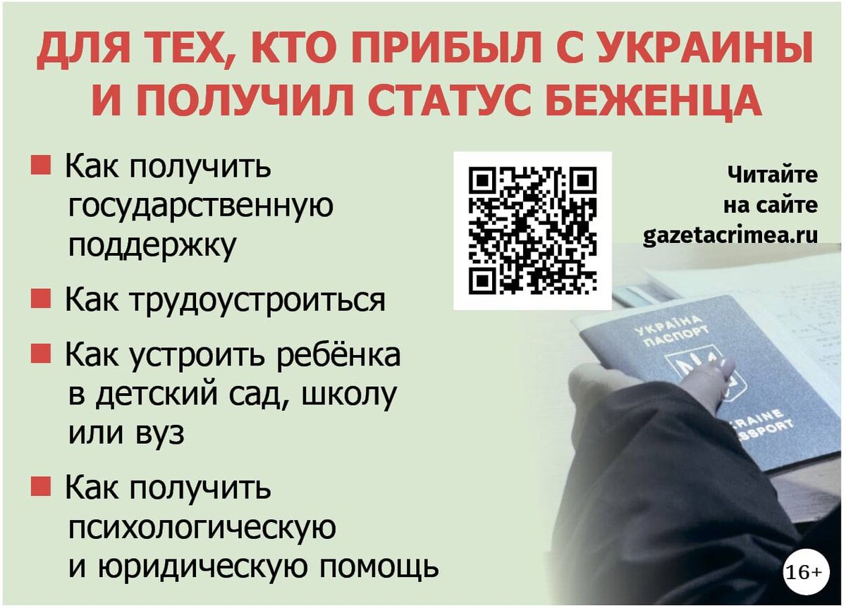 На сайте главной газеты полуострова "Крымская газета" https://gazetacrimea.ru/ появился раздел "Помощь беженцам", в которой собирается вся актуальная информация для лиц, прибывающих на территорию Республики Крым с Украины.