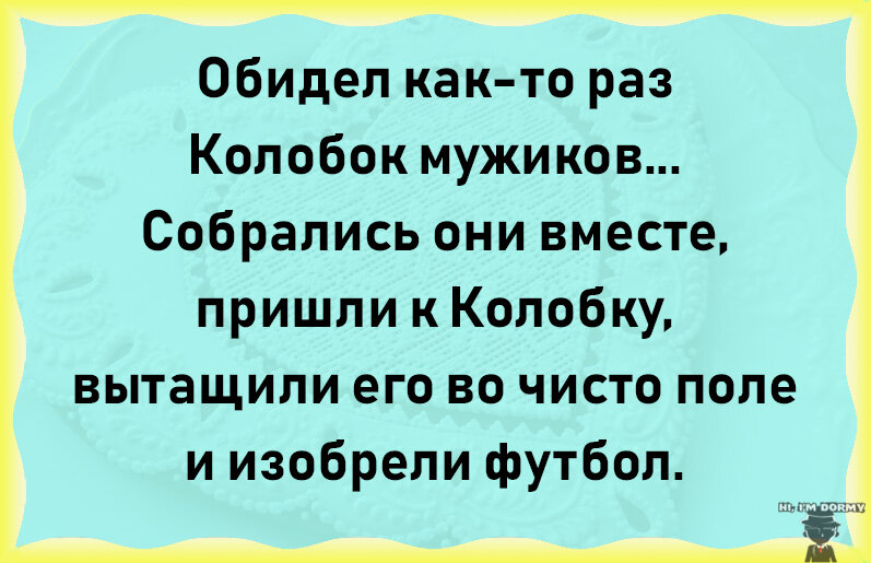 Здравствуйте, дорогие и уважаемые друзья! Спешу сообщить вам о том, что сегодня, 21-го апреля празднуется Международный день пряника. К сожалению, анекдотов про пряники мало, а смешных - ещё меньше. Но, к счастью, есть анекдоты про пирожки и пирожные, а ещё я вспомнил, что Колобок тоже в некотором роде пряник, поэтому про него анекдоты тоже будут. Анекдот 1 Анекдот 2 Анекдот 3 Анекдот 4 Анекдот 5 Анекдот 6 Анекдот 7 Анекдот 8 Анекдот 9 Анекдот 10 Желаю вам вкусных пряников и отличного настроения. С уважением, Г. Костин.