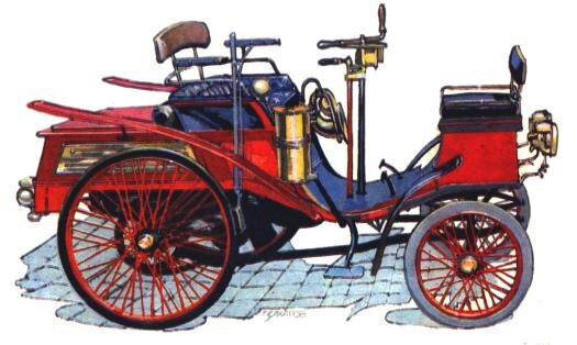 Это был первый в мире автомобиль, чьи партии выпускали одинаковыми по конструкции. Их продажа началась в апреле 1894 года, а на следующий год из ворот завода в Мангейме вышли 62 <БЕНЦ-ВЕЛО>. Характерные черты: заднее расположение силового агрегата, водяная испарительная система охлаждения, ременная коробка передач, электрическое зажигание, карбюратор испарительного типа, рычаги переключения передач на рулевой колонке. Уже нашли применение дифференциал, патентованное рулевое управление с трапецией, а с конца 1895 года - и третья передача в трансмиссии (для горных дорог). Автомобилей ,БЕНЦ-ВЕЛО> (такое наименование машина получила за колеса велосипедного типа) дошло до наших дней несколько десятков. Один из них находится в филиале музея истории Ленинграда ( комендатский дом Петропавловской крепости). Он изготовлен в 1895 году, а в 1963 году был реставрирован и поставлен на ход. Годы выпуска - 1894 - 1896 гг ( в скобках - отличающиеся параметры более поздних модификаций); количество мес