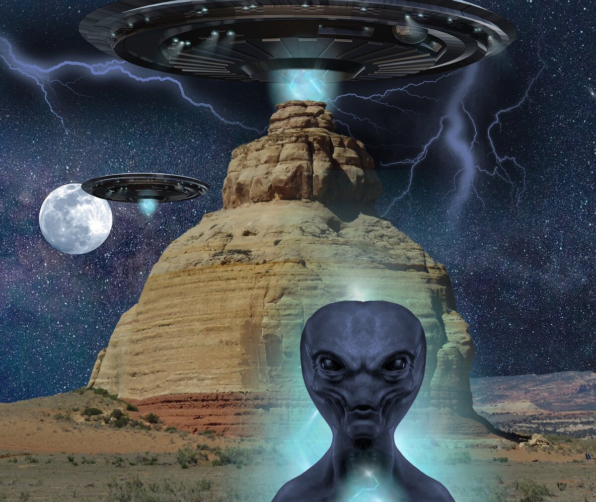 Некоторые верят в то, что Землю регулярно посещают пришельцы с других планет, а НЛО являются (по крайней мере, достаточно часто) их космическими кораблями. Примечательно, что это даже отдаленно не то, во что «верят» атеисты с гораздо большей вероятностью. В чём же отличие? В высшей степени разумно считать вероятным существование разумной жизни на других планетах. В конце концов, их миллиарды и миллиарды. Поскольку мы знаем, что разумная жизнь сумела развиться здесь, на Земле, из этого логично следует, что она, вероятно, сумела эволюционировать и в других местах. У нас есть довольно убедительные доказательства того, что жизнь зародилась на изначально мёртвой планете. Учитывая огромное количество планет, даже только в нашей галактике, трудно подумать, что условия, необходимые для зарождения жизни, не возникли где-либо ещё. Планеты за пределами нашей Солнечной системы действительно существуют. Есть два триллиона галактик с сотнями миллиардов звёзд в каждой. Было бы чертовски странно, если