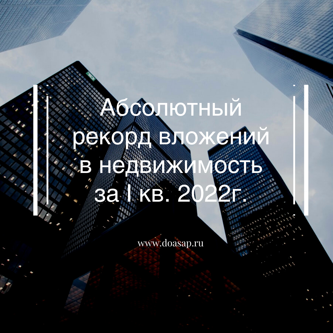 Рынок недвижимости достиг абсолютного рекорда вложений в первом квартале 2022 г.