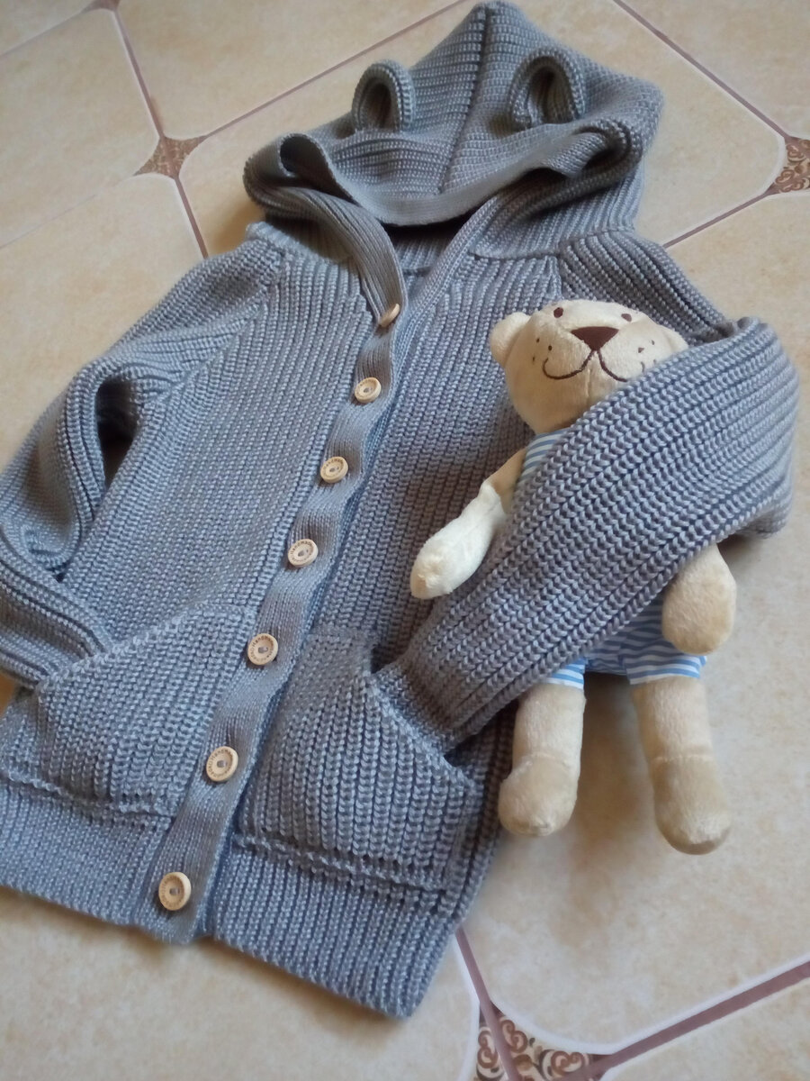 Кофточка детская с ушками, связана на двухфонтурной машине 5 класса.