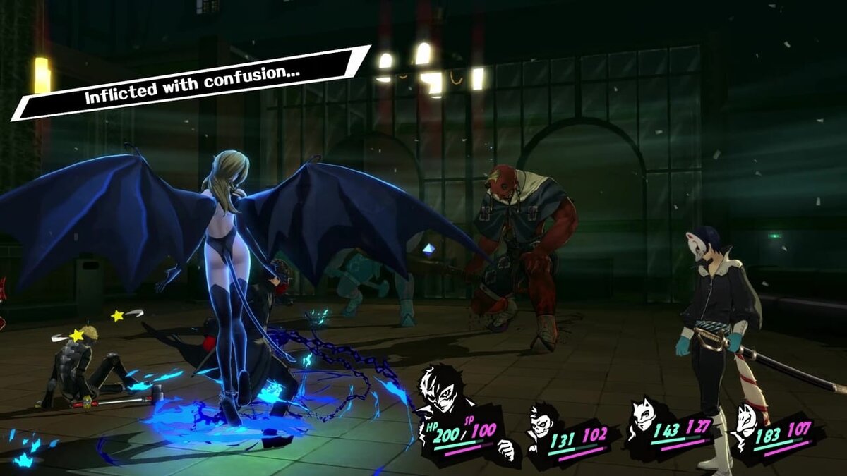 Sleep и Dizzy. Сон даёт станы, контузия промахи. Игра через них примерно одинаковая, всегда фановая. Я бы сказал, если вы новичок в P5R — это ваш вариант. Самый простой способ пощупать технические уроны и механику в игре, Анн вам поможет. На поздних уровнях можно делать страшные вещи через массовый сон и Almighty. Как плюс — в игре очень мало врагов с иммунами к этим статусам. Можете наслаждаться.