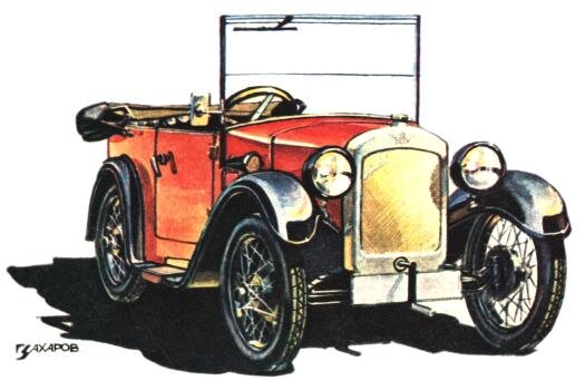 Фирма "ОСТИН" почти одновременно с "СИТРОЕНОМ" освоила выпуск конкурентной модели, которая получила цифровой индекс "7" ( в соответствии с действовавшей тогда в стране налоговой мощностью для этой машины ).Подобно французской микролитражке у нее двигатель был объединен в блок с коробкой передач и использовались ( хотя и технически решенные по-своему ) подача топлива самотеком, зажигание от магнето, термосифонное охлаждение. Однако в "ОСТИНЕ-7" уже нашли применение алюминиевые поршни, электростартер и тормоза на всех колесах. Оригинально был сделан дифференциал ( с цилиндрическими, а не коническими сателлитами ), а толкающие усилия от заднего моста на раму передавались трубой, в которую был заключен вал. В тоже время автомобиль оснащали трудоемкими в производстве тангентными колесами. На протяжении 14 лет производства "ОСТИН-7" многократно модернизировали: блок цилиндров вместо двух опор коленчатого вала получил три, зажигание стало батарейным, появились четырехступенчатая коробка перед