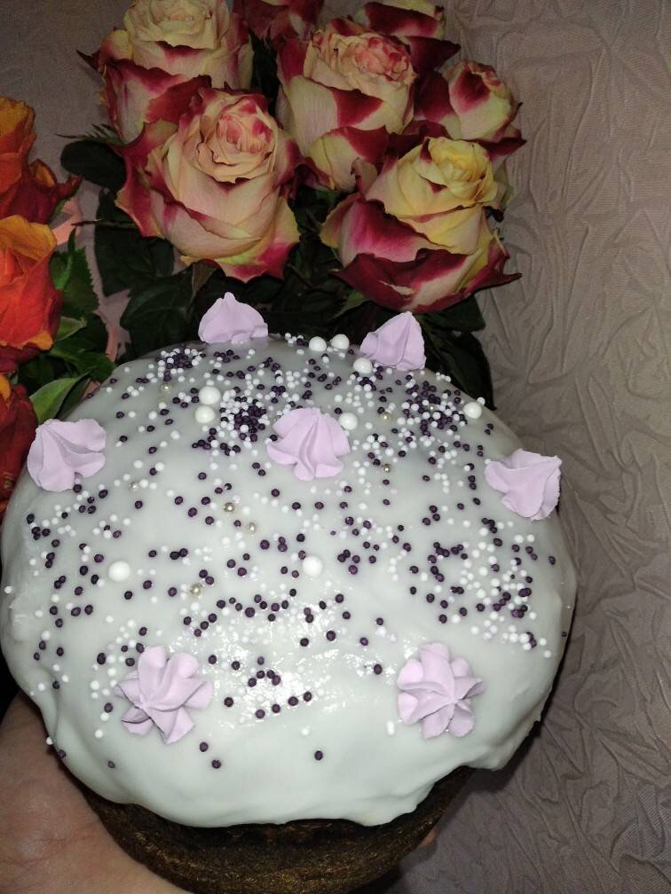 #великдень Ингредиенты: цукрової пудри, Сік 1 лимонна Способ приготовления: Цукрову пудру викласти у сухий посуд. Поступово, це важливо, додавайте сік лимона. Глазур має вийти дуже густа, щоб її доводилося ложкою розтягувати на пасці. Якщо глазур буде рідка, вона стече. Важливо, глазур наносити на холодну паску, так ви сформуєте гарну шапку, що не буде розтікатися. Якщо лимонного соку ви дали забагато, додайте ще пудри і доведіть глазур до необхідної консистенції. Паску покриту такою глазур'ю можна ще додатково прикрасити, а можна лишити й так. Вона дуже гарна просто з глазур'ю. Така глазур дуже смачна і чудово тримає форму. Миру нам усім!