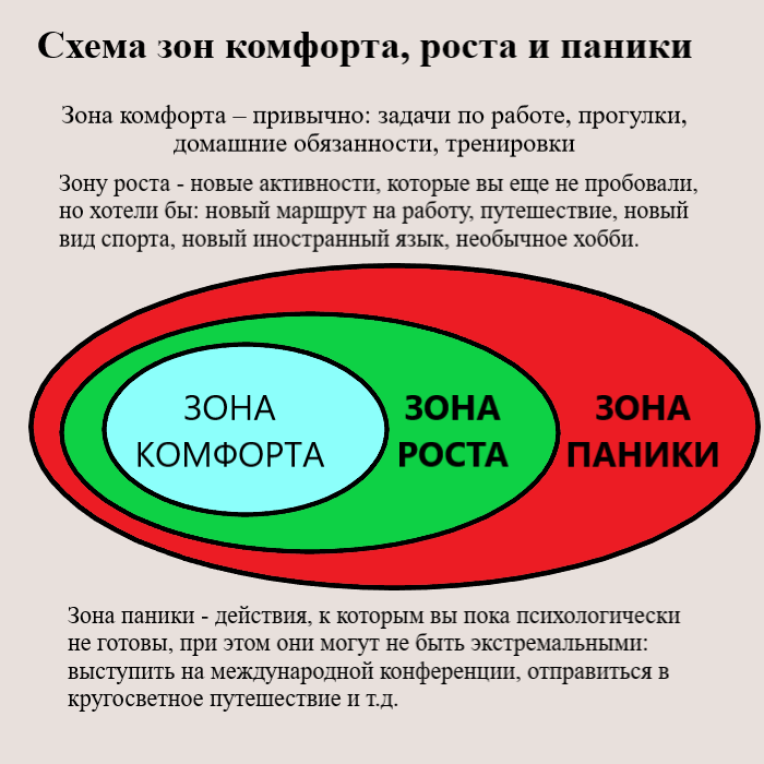 Современный мир дает каждому человеку огромное количество возможностей, но почему-то один человек их использует, а другой ждет, что все изменится само собой. Здесь просто необходимо вспомнить понятие зона комфорта. Многих с толку сбивает слово комфорт! На самом деле в психологии под зоной комфорта понимается привычное, знакомое, повседневное окружение. В огромном количестве случаев - это не про наполненность положительными эмоциями и новыми впечатлениями. Наоборот, это обычная повседневная жизнь, это то, что с человеком происходит каждое утро, каждый вечер, ежедневное общение, обычные условия жизни. И если рассматривать разных людей, можно увидеть, что у всех эта зона комфорта разная. Человек привыкает настолько, что часто даже подумать боится что-то изменить! Почему человек не меняет работу, которая его не устраивает? Почему держится за отношения, которые уже давно не приносят ничего хорошего в его жизнь? Да потому, что огромный страх перед этим потом. Потом - неизвестно, незнакомо
