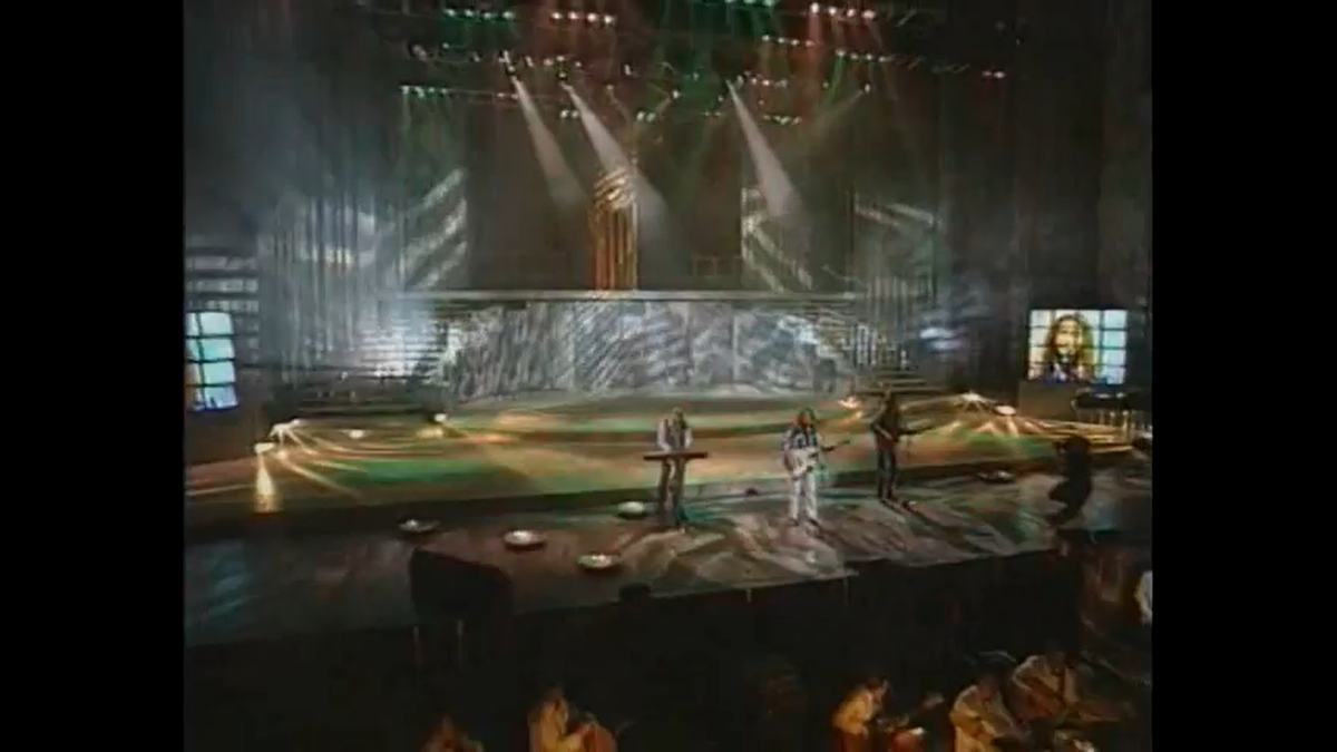 1. Леонид Агутин -- Пароход Весёлый кантримен, босоногий мальчик всея эстрады 90х, как всегда улыбается, демонстрируя на американский манер волосатую грудь из рубашки. Осушил реку слёз, оставшуюся после выступления будущей жены. На заднем плане у Агутина играет гитарист, напоминающий Валерия Кипелова. Видимо, даже рок-звезда не удержалась от посещения мероприятия. Кипелов -- человек простой: и в метро может спуститься и Леониду подыграть. Здорово! 2. Лайма Вайкуле -- Я вышла на Пикадилли "Вы искали губами губы и всё, что искать нельзя" -- шикарная фраза! Смеялась очень долго. Вообще, песня неплохая. Близкая всем интеллигентным девчонкам, которые драматизируют отношения и романтично отзываются о бывших, которых в момент расставания обзывали земляными червяками. Что касается Вайкуле, то на нее нанесли столько грима, что она похожа на резинового человека. 3. Ирина Аллегрова -- Безответная любовь Мне одной в этой песне слышится "гулкомань" вместо "глухомань"? Похоже, что глухомань в данно