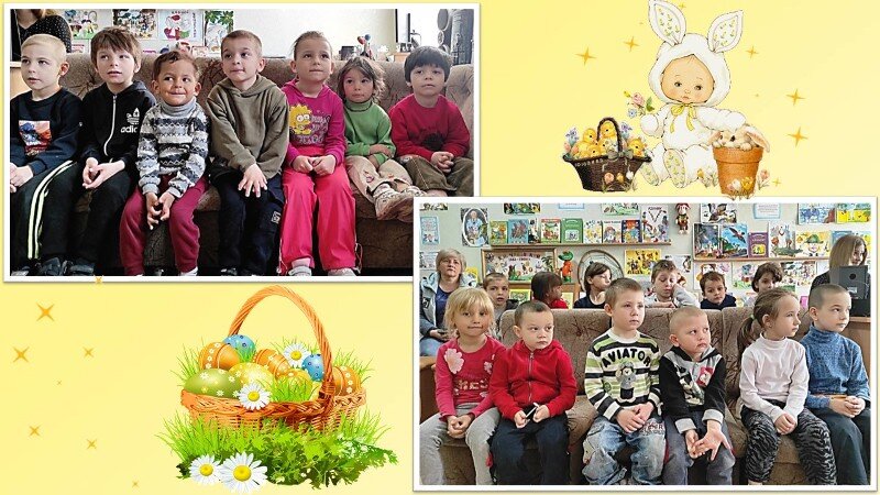 Мультфильм «Моя первая Библия» и презентации «Детям о Пасхе» познакомили ребят с библейскими историями об Иисусе Христе, с обычами и традициями празднования Светлого Христова Воскресения. Игровая мозаика из загадок, пословиц и поговорок, развлечений с пасхальными яйцами помогла детям закрепить полученные знания.