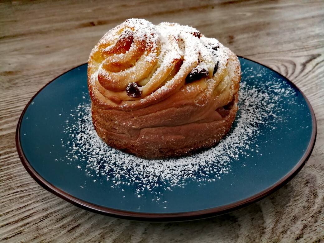 Из такого количества теста вышло 6 небольших "Краффин". #пасха #кулич #краффин #пасхальнаявыпечка #пасхальныйкулич #краффинсизюмом #выпечка #академия #готовимвместе Ингредиенты: Для опары:, молока, сахара, сухих (15 гр прессованные), муки, Для теста:, яйца, сахара, соли, муки, сливочного масла для теста, сливочного масла для смазывания слоев, Для начинки:, изюма, Для сиропа:, воды, сахара, Для декора:, Сахарная пудра Способ приготовления: Соединить сухие дрожжи с мукой, перемешать (если прессованные дрожжи, то растворить их в теплом молоке). В тёплое молоко добавить сахар и муку. Перемешать до однородной массы. Накрыть полотенцем и убрать в тёплое место на 30 минут. Смешать горячую воду и сахар в миске. Перемешать, растворить сахар. Промыть изюм. В остывший сироп добавить изюм и оставить на несколько часов. Смешать яйца, сахар и соль. Перемешать. Добавить опару. Просеять муку через сито, добавить размягченное сливочное масло. Вымесить. тесто. Переложить тесто в миску, накрыть полотенце