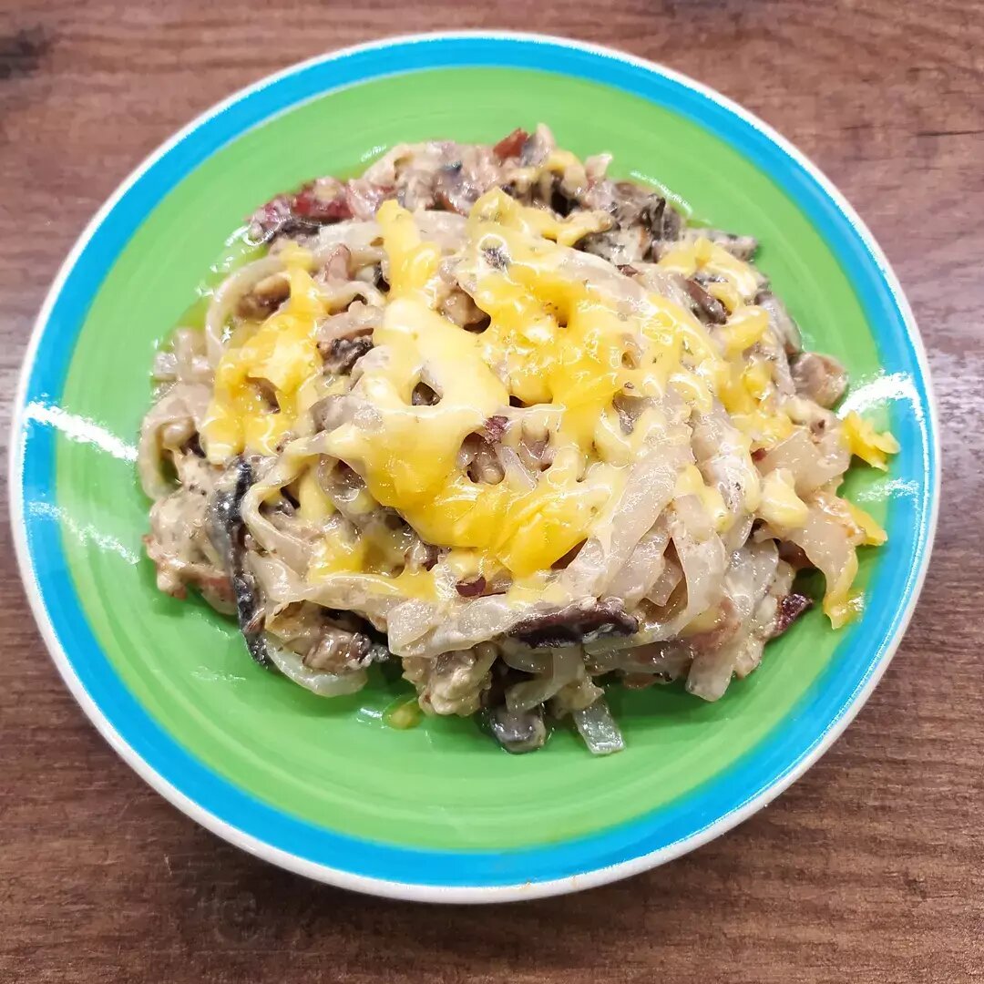 Когда хочется разнообразия или соскучился за макарошки на выручку приходят ширатаки 👍 С ними можно приготовить практически все макаронно-лапшичные истории. ❗Важно! Даже не пытайтесь есть их на холостую! Их задача создать привычный вид и текстуру. Вкус, как таковой, отсутствует, при этом есть специфический запах, который нужно удалить предварительной обработкой. Чтобы получить вкусно нужно напитать ширатаки активным соусом или бульоном. Ингредиенты: ширатаки феттучини, шампиньонов, бекона, жирных сливок, сыра, соль, перец, мускатный орех, тимьян Способ приготовления: Ширатаки промыть в 3 водах, обдать кипятком, оставить стечь. Грибы нарезать. Разогреть сковороду. Бекон нарезать, прижарить на сковороде. Добавить грибы, обжарить до готовности. Добавить ширатаки, прогреть. Влить сливки, добавить специи, выпарить до лёгкого загущения. Добавить натертый сыр (немного оставить для подачи) досолить при необходимости. Прогреть до расплавления сыра. Готово! Выкладываем на тарелку, присыпаем сыро