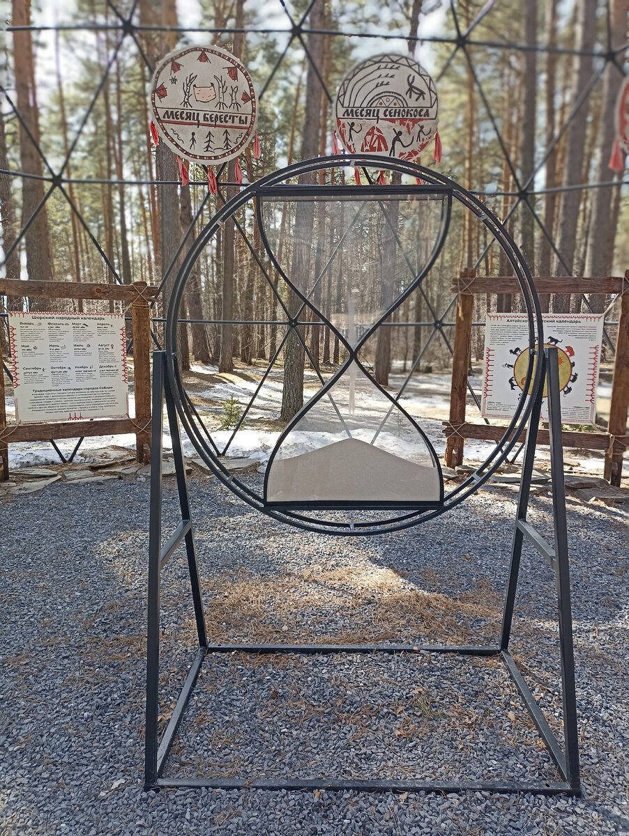Добрый день, рада приветствовать вас на моем канале. В "Томской писанице" в беседке календарей народов Сибири мы увидели большие песочные часы. Песочные часы относятся к одним из самых древних видов устройств, изобретенных людьми для измерения времени. Но точная дата к сожалению не известна. Однако по данным, которые сохранились, можно сделать вывод, что принцип, использующийся в песочных часах, был известен в Азии задолго до возникновения летоисчисления. Несмотря на активное развитие часового дела и появление более совершенных механизмов, песочные часы используются и сейчас. Самое главное значение для точности хода часов имело качество песка. он должен быть просеян через многочисленные сита, тщательно высушен и отожжен. Стеклянные колбы для изготовления часов производились по известной технологии. В место, где стыковались колбы, вставлялась пластина, которая должна была регулировать скорость пересыпания. Чтобы скрепить две колбы, место их стыка плотно обматывалось ниткой и дополнител