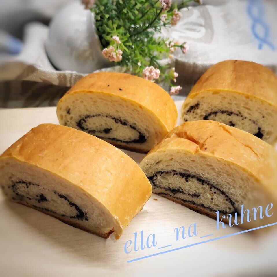 Ароматная, воздушная выпечка подойдёт и на завтрак, и на перекус. #академия Ингредиенты: сухих дрожжей, растительного масла, сахара, соли, молока, муки, Для начинки:, Мак, Сахар Способ приготовления: В ведро хлебопечки поместить всё ингредиенты, влить тёплое молоко, всыпать муку (может уйти больше или меньше). Установить программу "Тесто" и замесить. Готовое тесто из х/б переложить в смазанную растительным маслом миску, накрыть, поставить в тëплое место и дать подойти в 2 раза (~40-50 минут). Выложить на силиконовый коврик и разделить на две части. Мак запарить. Каждую часть раскатать в прямоугольник, посыпать сахаром и маком. Свернуть рулетом. Выложить на противень, застеленный бумагой. Накрыть салфеткой и дать постоять 15-20 минут. Смазать сладким чаем. Выпекать в предварительно разогретой духовке 25-30 минут. Готовый рулет можно ещё смазать чаем. Приятного аппетита😍! Если вам по душе мои незатейливые рецепты подписывайтесь и оставляйте свои фотоотзывы📸!