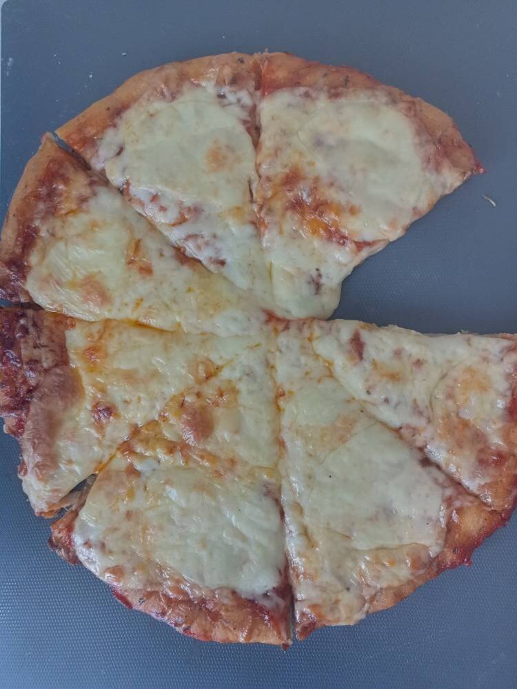 🍕🍕🍕🍕🍕🍕 Ингредиенты: Тесто, сухих дрожжей, муки, теплой воды, растительного масла, соли, молотой паприки, сушёного базилика, Соус, томатной пасты, растительного масла, сахара, соль, базилик сушеный, Начинка, разного сыра Способ приготовления: В муку всыпаем дрожжи, соль, паприку и базилик. Вливаем воду и масло. Замешиваем тесто. Ставим в теплое место на час. Для соуса смешиваем все ингредиенты. Раскатываем тесто, смазываем соусом. Сыр трем на тёрке. Режем на кусочки. Выкладываем на тесто и в разогретую духовку на 7-10 минут. Приятного аппетита.