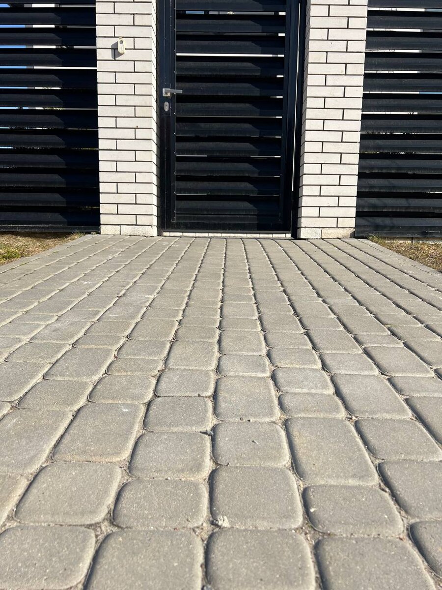 Скоро начнется время заливки дорожек и укладки брусчатки. Да здравствует строительно-дачный сезон! Я свою брусчатку уложил лет 5 назад. Делал это жарким летним днем. Укладку производил по технологии. Знаю, что сейчас многие советуют укладывать брусчатку просто на песок и говорят о том, что все отлично держится и ничего не портится. Может действительно у кого-то так и есть, но я не люблю подобные риски, поэтому делаю все, так сказать, «по книжке». Небольшое предостережение!) Если Вы планируете заниматься укладкой брусчатки, готовьтесь – будет очень много пыли! Не стоит мыть окна перед тем, как начать работу. Так просто сделала моя жена, и в итоге я остался крайним, что не предупредил ее заранее) Ну а теперь к делу! Во дворе я уложил брусчатку на дорожку и отмостку, а также в местах для парковки автомобилей. Эта площадка вышла 11 на 5 метров. Чтобы 2 машины легко вмещались. Ширина дорожки – чуть больше 1 метра. Этапы выполнения работы по укладке брусчатки 1. Убираем часть грунта, снимаем