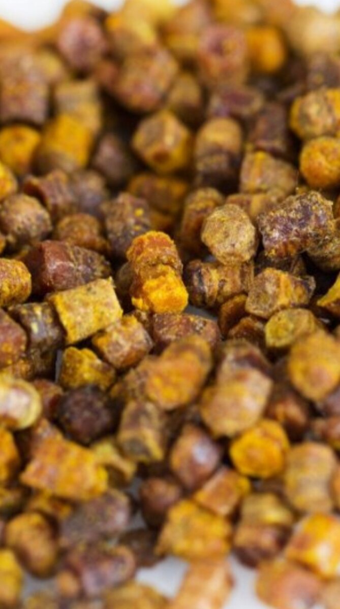Мед пчелы производят из нектара, а пергу — из пыльцы цветочных растений. Пчелы приносят ее в виде двух шариков на задних лапках (ножках), поэтому такую пыльцу называют пчелиной обножкой. Принесенную в улей пыльцу пчелы утрамбовывают в сотовые ячейки, обрабатывают своими ферментами, заливают медом и запечатывают. Удивительно то, что производят пчелы этот продукт очень разумно, заботясь о своих будущих личинках и подбирая им пыльцу не одного вида, а создавая своеобразный коктейль со своим набором микроэлементов. ХИМИЧЕСКИЙ СОСТАВ ПЕРГИ. Перга представляет собой белковое вещество, биологическая ценность которого превышает ценность молока, яиц и мяса. Белки, входящие в состав перги, очень близки по составу к белкам крови, поэтому они хорошо усваиваются организмом. Пчелиный «хлеб» содержит практически все витамины, 16 аминокислот, 13 жирных кислот, углеводы, макро- и микроэлементы, гормоноподобные вещества. ЧЕЛЕБНЫЕ СВОЙСТВА ПЕРГИ. Перга оказывает на организм тонизирующее и омолаживаю