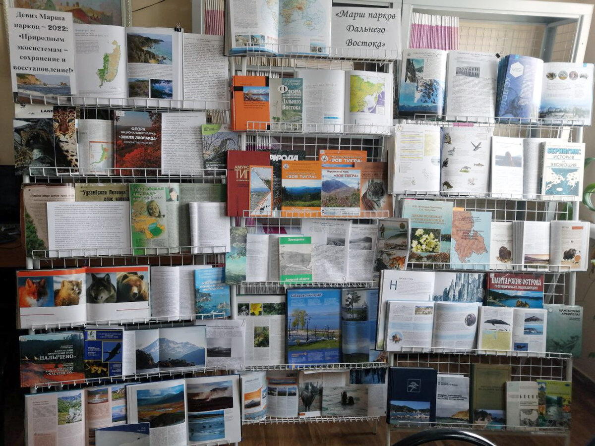 Ежегодно в апреле во всём мире стартует Международная общественная акция, призванная объединять людей вокруг идеи поддержки и сохранения заповедников, национальных и природных парков, заказников и других особо охраняемых природных территорий – «Марш парков». Центр охраны дикой природы объявил девиз «Марша парков». В этом году он звучит как «Природным экосистемам – сохранение и восстановление!». В читальном зале библиотеки ЦНБ ДВО РАН при Тихоокеанском институте географии экспонируется книжно-иллюстративная выставка под названием «Природным экосистемам – сохранение и восстановление!». Выставка продлится до 29 апреля.