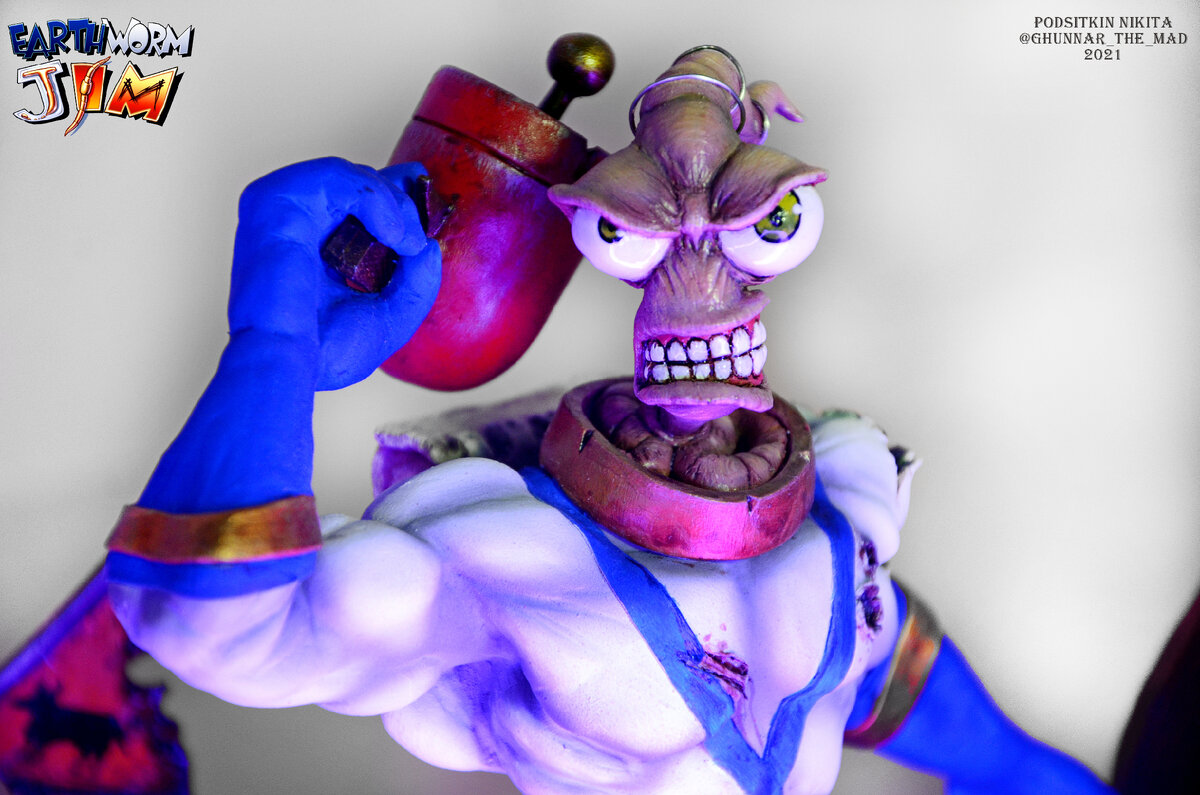 Фигурка моей работы, по вопросам приобретения обращайтесь в https://vk.com/sculptureforgeek Джим изначально был обычным земляным червём, занимавшимся тем, что обычно делают дождевые черви: поедал гумус и спасался от ворон. Однажды в космосе над Землёй злодей Психоворон нагнал космический корабль, пилотируемый бунтовщиком, который украл «Ультра-высокотехнологичный неуничтожимый суперкосмокиберкостюм», сконструированный Профессором Обезьяноголовом. Скафандр предназначался для злой Королевы Пульсирующей, Надутой, Прогнившей, Потной, Гнойной, Уродливой, Слизнезадницы, желающей продолжить завоевание галактики. В результате космического сражения, скафандр попал на Землю, и, по чистой случайности, Джим оказался внутри его воротника. В результате он мутировал в крупного и разумного супергероя.