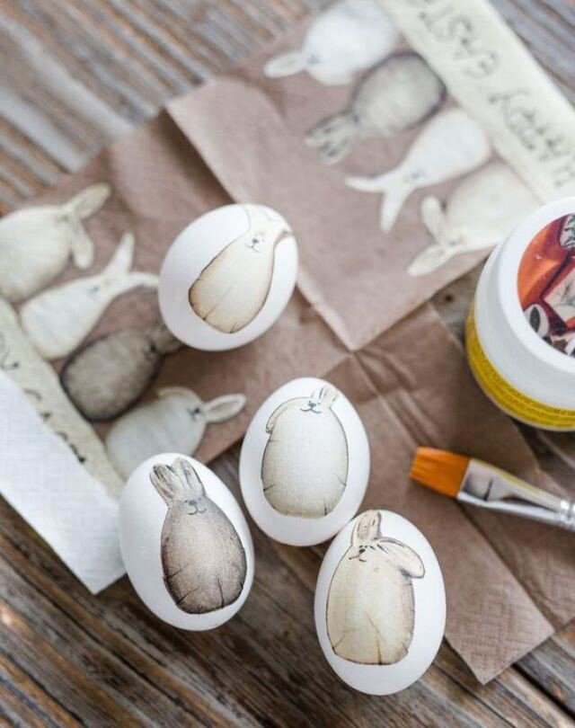 Очень красивая и очень простая техника украшения чего угодно! Да , да ! Декупаж можно наносить не только на предметы интерьера но и украшать яйца! Как же это сделать?! 1. Берём уже подготовленное , сваренное , чистое яичко ! 2. Берём красивые салфетки по теме , и вырезаем нужные элементы ! Обычно салфетки декоративного плана трёхслойные , нужно взять только верхний слой с рисунком! 3. В классическом декупаже используют клей ПВА, но мы яйца будем использовать в пищу так что нам подойдёт более безопасный материал - белок яйца! Да , им очень хорошо всё приклеится ! 4. Когда всё готово - прикладываем наши вырезанные салфетки к яйцу и аккуратно кистью смоченной в белок , плавными разглаживающими движениями проходимая по рисунку . Далее ждём высыхания и всё! Яичко готово ! Счастливой вам Пасхи ❤️