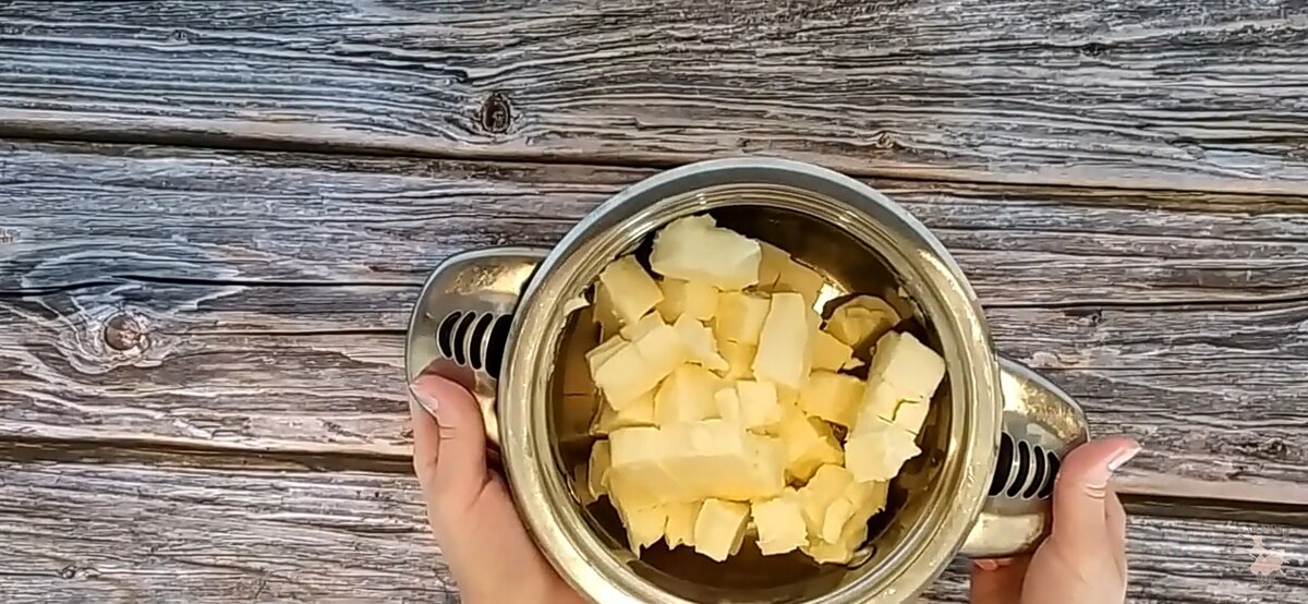 Топленое масло (также его называют "русское масло") очень ценный и полезный продукт - оно содержит множество витаминов и микроэлементов, а самое главное - при нагревании до 200ºС оно не выделяет канцерогены, как растительные масла и не пригорает, как сливочное масло. Это значит, что оно идеально подходит для жарки и выпекания! Нам понадобится всего 1 ингредиент - сливочное масло очень хорошего качества 82% жирности и выше. Я использую 500 г, купленного на рынке и проверенного мной, масла 82,5 %. Нарезаем на средние кубики (для удобства), кладём в кастрюлю с толстым дном и ставим на медленный огонь томиться. Через 30 мин масло начнёт кипеть и появится пенка. Не трогаем, а просто наблюдаем. Через час, пенка станет более плотной, а, когда масло уже будет прозрачным, а пенка легко убирается ложкой или вилкой, можно снимать с огня. Убираем пенку. Процеживаем масло через сито и марлю в чистую банку. Оставляем остывать при комнатной температуре. После, убираем в холодильник. Там масло