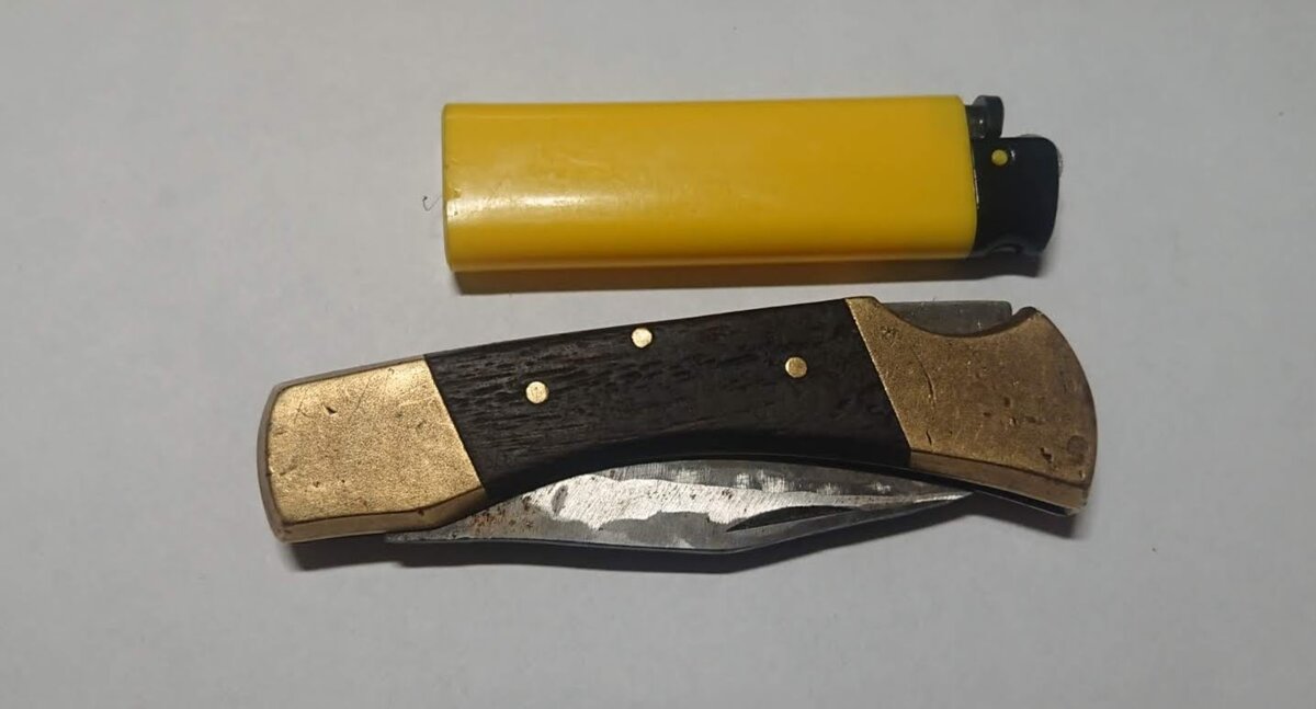 Попал мне как-то в руки вот такой складной нож. Не знаю, что зацепило в нем - с виду замученный клон известного американца Buck 110. Вобщем решил я дать ему вторую жизнь. Справедливости ради скажу что раньше я с подобного типа ножами близко не соприкасался. Исключение оставляют наверно лишь разнообразные складные ножики в советском детстве и мой старенький Victorinox Outrider, постоянно валяющийся в рюкзаке. Поиски в интернете и задавание глупых вопросов в тематических сообществах позволили выяснить, что в руках у меня не Buck вовсе, и вообще не фирменный нож, а с очень большой вероятностью китайский клон еще одной известной американской ножевой марки - Schrade. Позже, исходя из размеров, я выяснил даже модель - LB5 Тот нож, что мне достался, помимо большого количества грязи внутри и полного отсутствия смазки, имел вусмерть уточенный клинок ну и в целом, вид довольно печальный. Первым делом разобрал страдальца. Все как положено - сборка на латунных расклепанных штифтах. Заклепки, спр