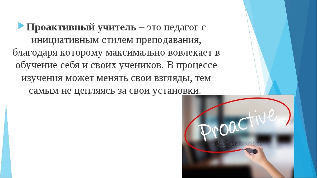 Проактивный человек нацелен на результат и не ждет, что все получится само собой. Он понимает, как может влиять на исход, и прикладывает максимум усилий, чтобы добиться желаемого.