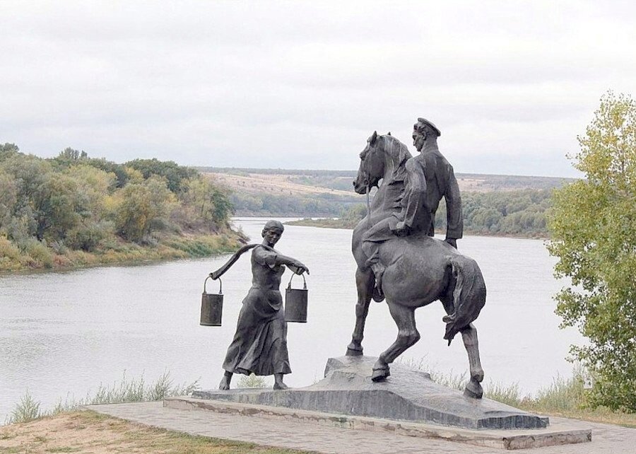 "Памятник любимым киногероям" Аксинья Астахова и Григорий Мелехов. Памятник в Вешенской.