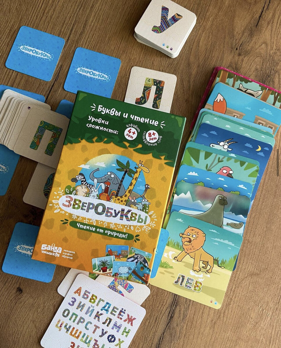 Зверобуквы - одна из наших любимых игр🔥 Для детей от 4х до 8-10 лет👍🏻 В комплект входят карточки с буквами и карточки с картинками и словами. Если коротко - карточки с буквами раскладываем рубашками вверх, и отдельно кладем стопку карточек со словами. Открываем первую карточку со словом (картинкой), а затем карточки с буквами, из которых нам нужно составить это самое слово. Конечно первый раз все открывают наугад, но потом уже нужно запоминать, где какая буква лежит, чтобы собрать слово и выиграть. Выигрывает игрок, у которого в конце будет больше карточек с картинками. Все карточки отмечены лапками разных цветов, так вы можете регулировать уровень сложности по возрасту. Такая игра на запоминание здорово помогает не только выучить буквы, но и развивать память. Честно признаюсь - я иногда проигрываю Алисе, моя память уже «хромает» 😆Так что мы играем на равных! В правилах есть еще варианты усложнения - например, открывать буквы только в том порядке, в каком они идут в слове. И еще