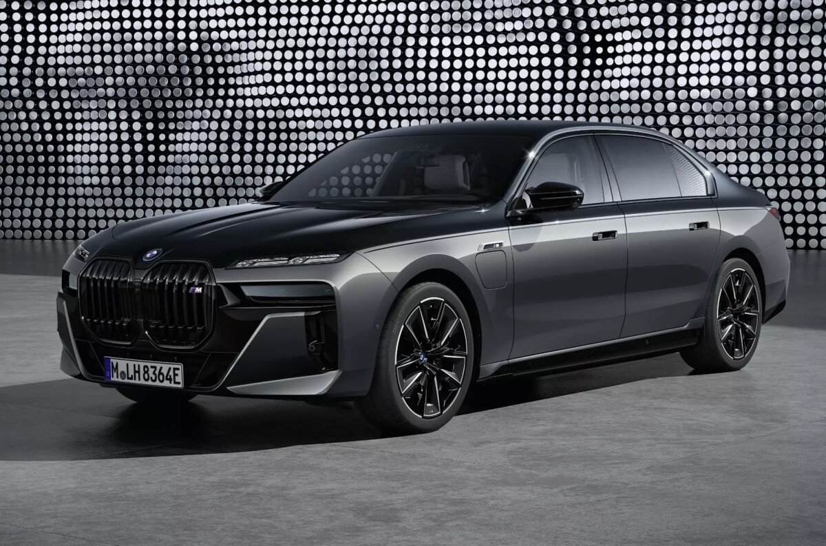 В новейшем поколении седан BMW 7-й серии предстает перед нами как с двигателем внутреннего сгорания, так и на чисто электрической тяге. «Электричка» получила название BMW i7, она построена на новой, общей с семейством 7-й серии с двигателем внутреннего сгорания платформе. Первой на рынок выходит полноприводная версия i7 xDrive60 с силовой установкой из двух электромоторов, суммарной мощностью 536 л.с. и крутящим моментом 744 Нм. Анонсированный запас хода достигает 590 км по циклу WLTP, разгон до 100 км/ч занимает 4,7 с, а максимальная скорость ограничена 240 км/ч. I7 немного шире, чем предыдущая 7-я серия, оснащен адаптивной пневмоподвеской и технологией самовыравнивания, которая опускает автомобиль на 10 мм в спортивном режиме или на скорости более 120 км/ч. Подвески также может приподнять автомобиль на 20 мм. Каждый из двух блоков силовой установки BMW eDrive оснащен электродвигателем, электроникой и трансмиссией в ультракомпактном корпусе. В двигателях i7 не используются ре