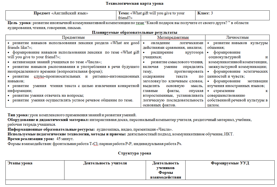 Тема: «What gift will you give to your friend?» Класс: 3